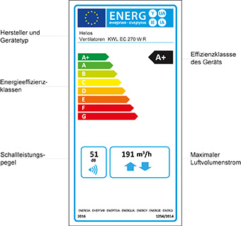 Nach der neuen EU-Ökodesign-Verordnung müssen Geräte für die Wohnungslüftung ab Januar 2016 mindestens so viel Primärenergie einsparen, wie sie verbrauchen. Zeitgleich wird das aus dem Bereich der Haushaltsgeräte bekannte Energieeffizienz-Label nun auch für Lüftungsgeräte eingeführt.