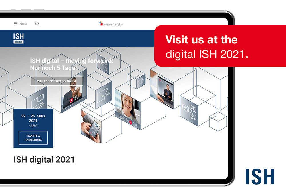 This year the leading trade fair for water, heat and air conditioning will take place digitally due to covid-19. We will also be present with our virtual stand from March 22nd to 26th and are pleased to welcome you here. There you can as well find some previews of this year's highlights: